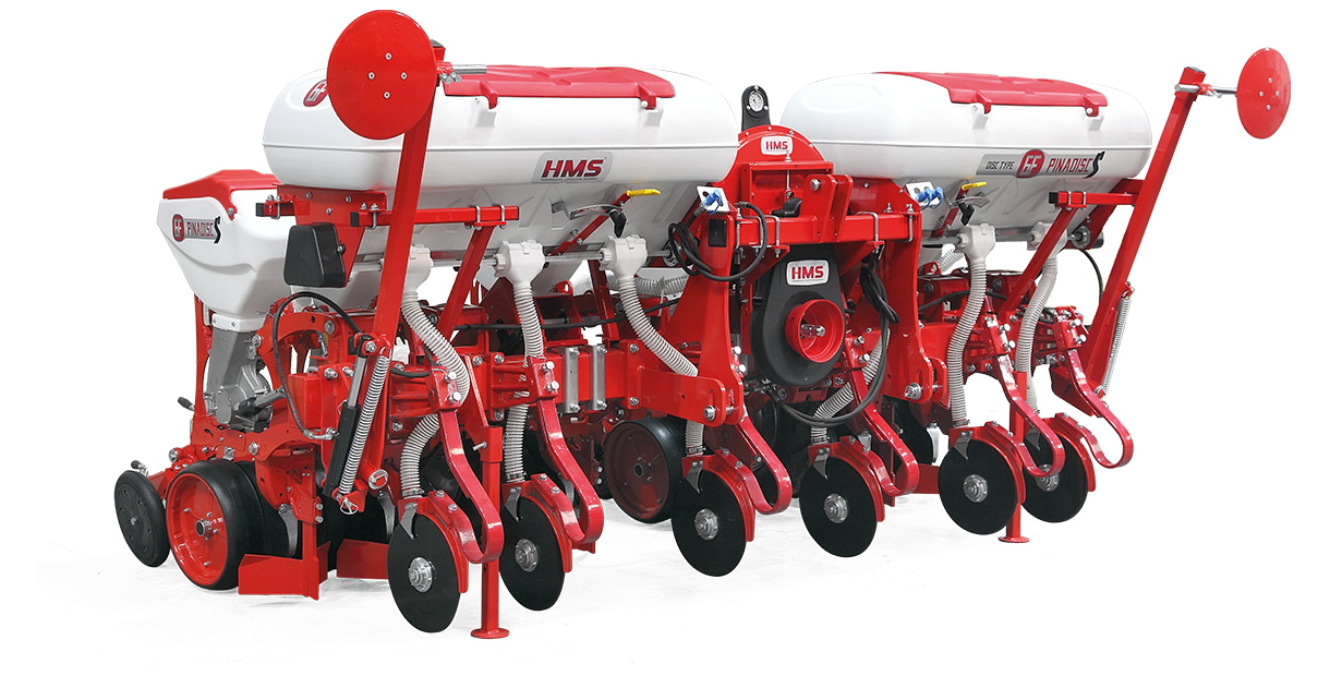 HMS DİSKLİ PNÖMATİK HASSAS EKİM MAKİNALARI her çeşit tohumun hassas olarak, istenilen ekim aralığında ve sıra üzeri mesafesinde ekilmesini sağlar. İsteğe bağlı olarak 4-6-8 sıralı olarak imal edilebilir. Ekici ünitelerde tohum yatağı disk vasıtasıyla açılır. Her ekim ünitesinde özel malzemeden üretilmiş, 2-adet disk bulunmaktadır. Ekici ünitelerin diskli tip olması ve şase önüne takılabilen kesici diskler sayesinde işlenmiş veya yarı işlenmiş sap kalıntıları bulunan tarlalarda çalışabilir. Tekerlekten alınan hareketin ekim ünitelerine iletimi şaft mekanizması ile yapıldığından, sıra üstü mesafelerde hassas ekim yapılabilmektedir. Ekici Ünitelerin her iki tarafında bulunan lastik tekerler sayesinde her türlü toprak şartlarında hassas olarak Derinlik ayarı yapılabilir. Tohum ünite arkasında bulunan V baskı tekerlekleri vasıtasıyla sıkıştırılır. Arka baskı tekerinin uyguladığı basınç ve açı yay vasıtası ile ayarlanabilir. V baskı tekerlekleri toprakta kaymak tabakası oluşumunu önler. Diskli ekim üniteleri erken tavda ekim yapmaya imkan sağlar. Disk ayaklı pnömatik ekim makinaları sırta ekim yapılabilmeye uygundur. Sırtları bozmaz. Tohum yatağı dönerek çalışan diskler tarafından açıldığından sertleşmez. Bitki gelişimine uygundur ve traktöre fazla yük getirmez. Üniteler istenildiği zaman kolayca yol ve iş durumuna geçer. İsteğe göre değişik aksesuarlar montaj edilebilir. Yüksek çalışma hızı ve mükemmel performansı ile zamandan tasarruf ve yüksek verim sağlayan bir ekim makinasıdır.